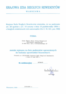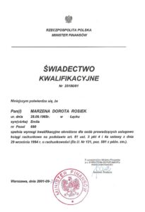 Certyfikat Ministerstwa Finansów z 2001 roku. Gwarancja bezpieczeństwa prawnego.
